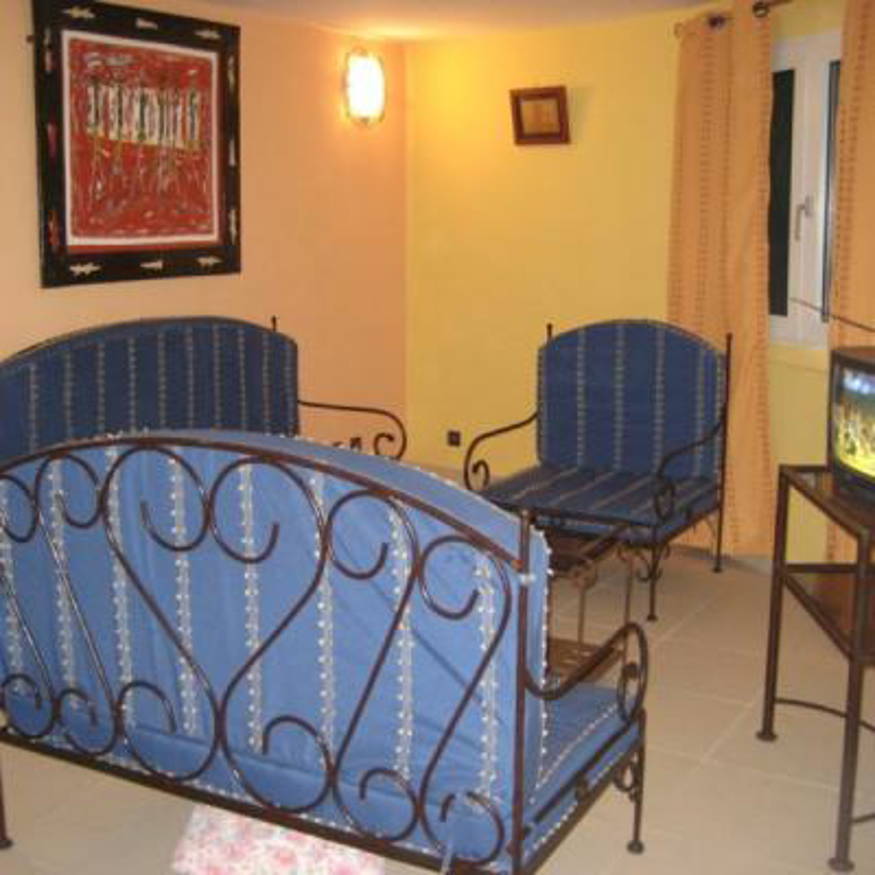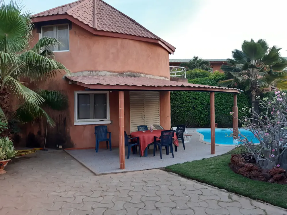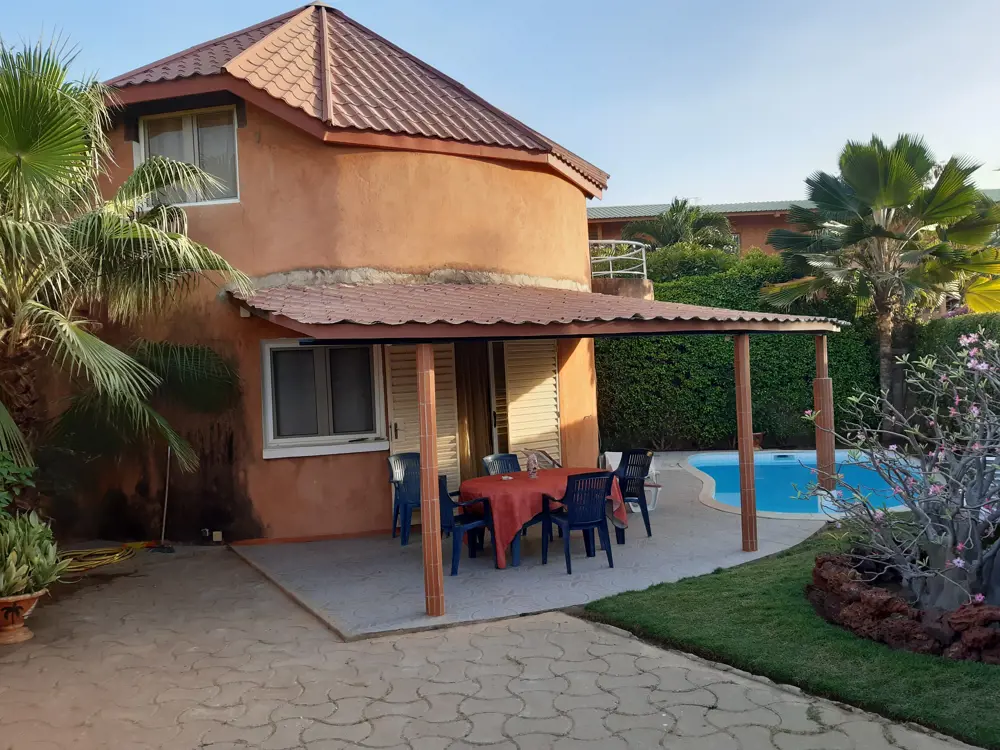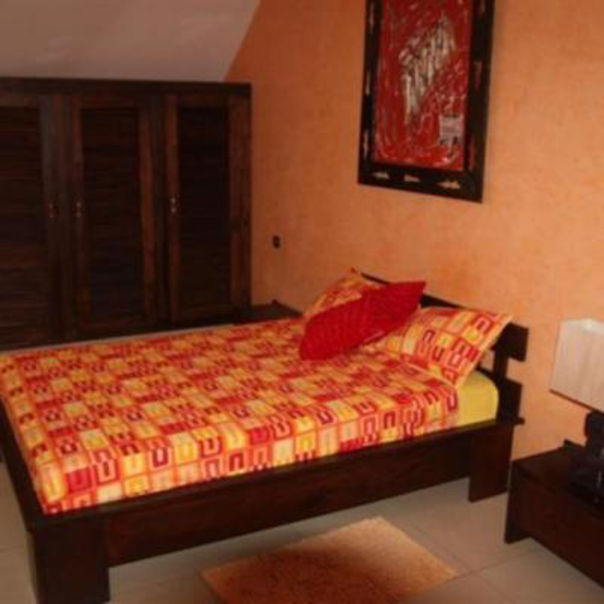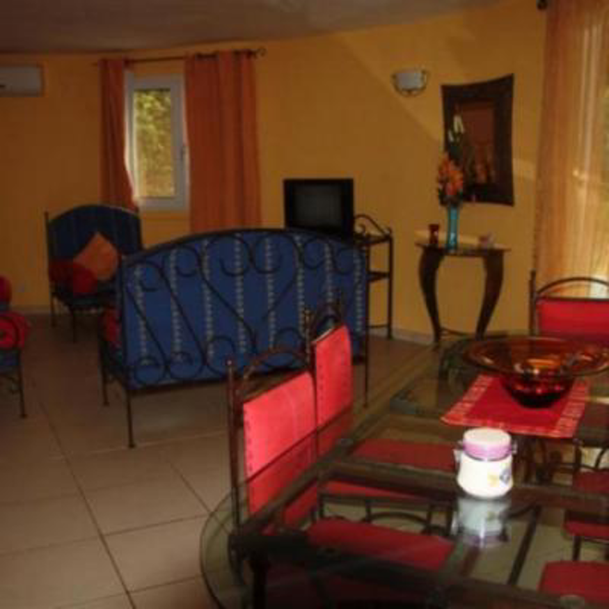 La villa entièrement climatisée est équipée du confort européen,les meubles et la décoration sont de style africain.