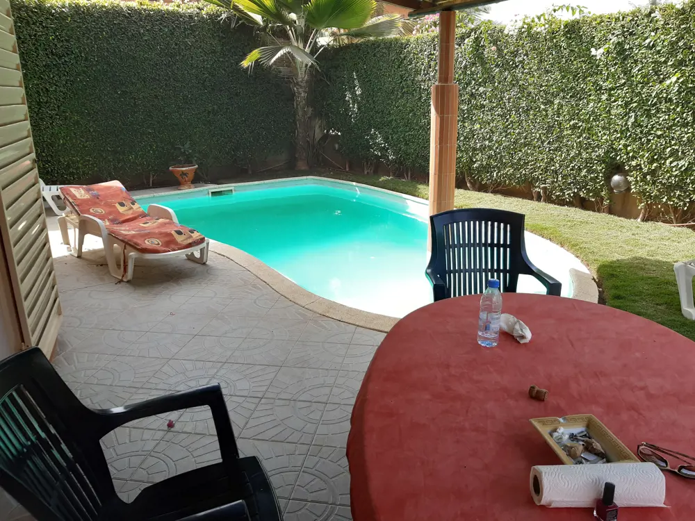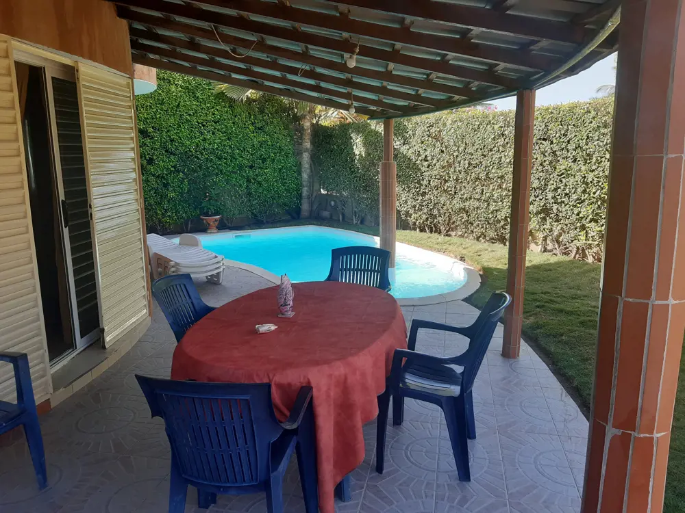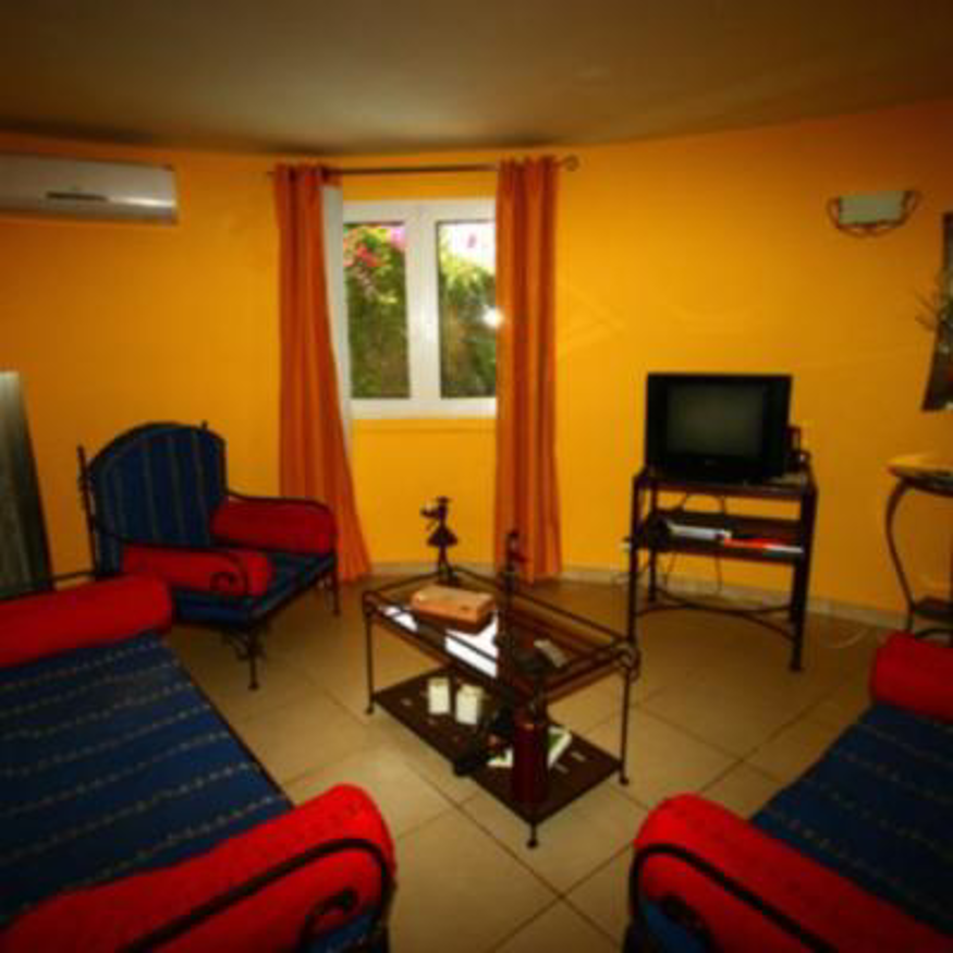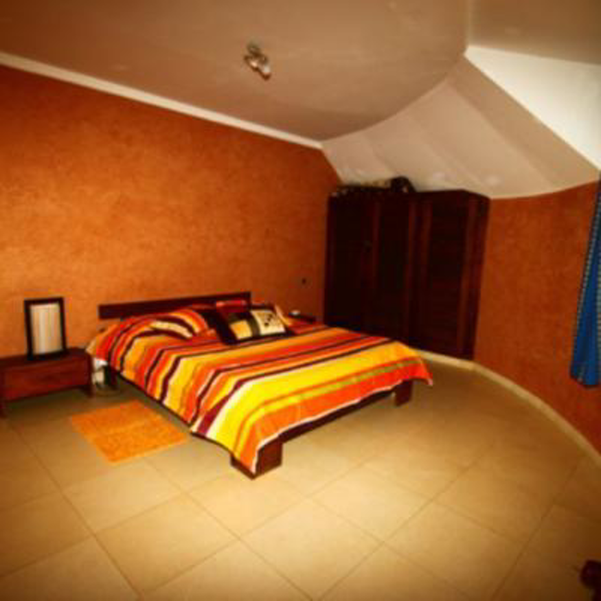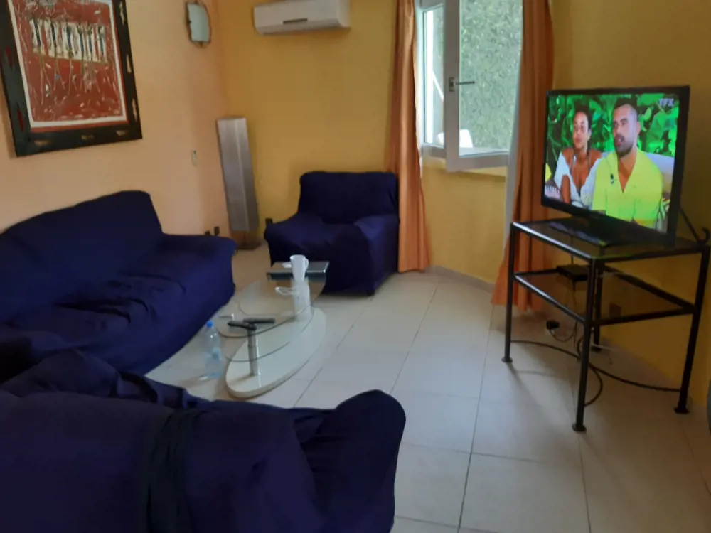 La villa entièrement climatisée est équipée du confort européen,les meubles et la décoration sont de style africain.