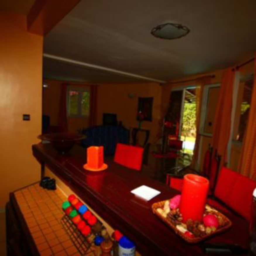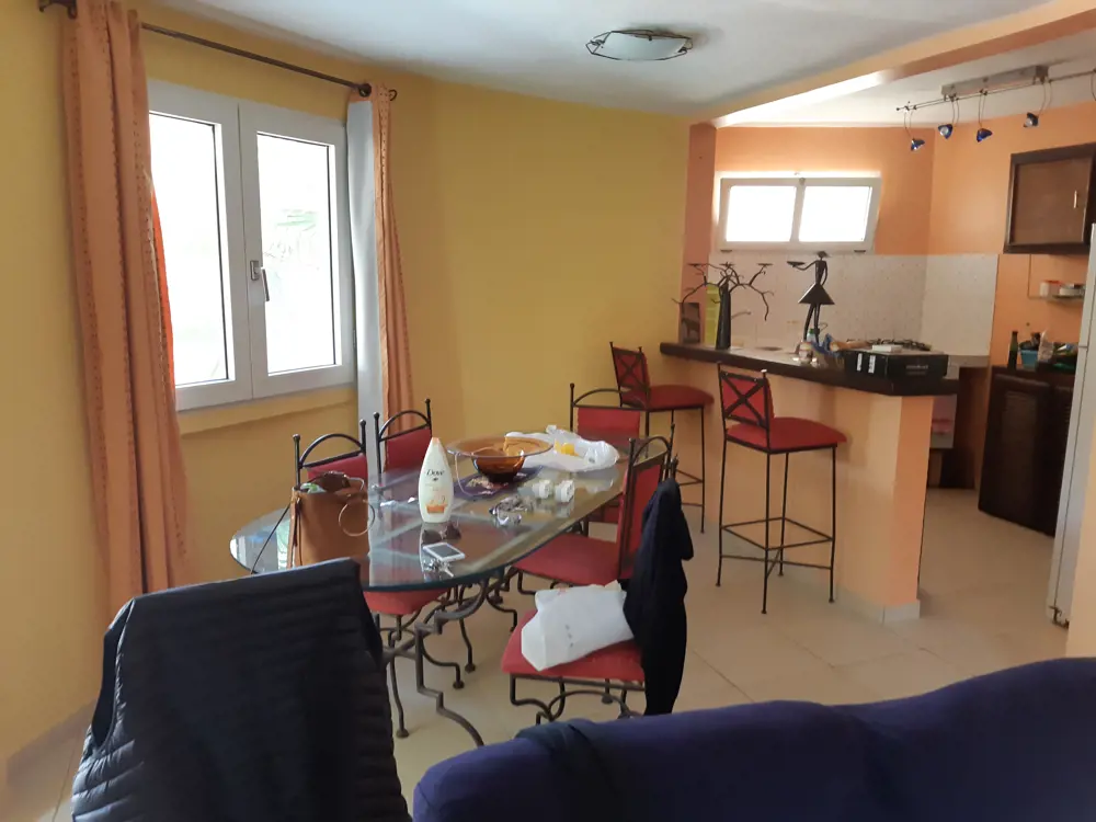 Au rez-de-chaussée: une chambre, une salle de bains, cuisine américaine avec son comptoir bar est entièrement équipée au confort européen, salon, salle à manger.